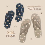 Mum & Kids Flip Flops Doggies Twinning Set (Ladies Khaki Kids Grey Blue)